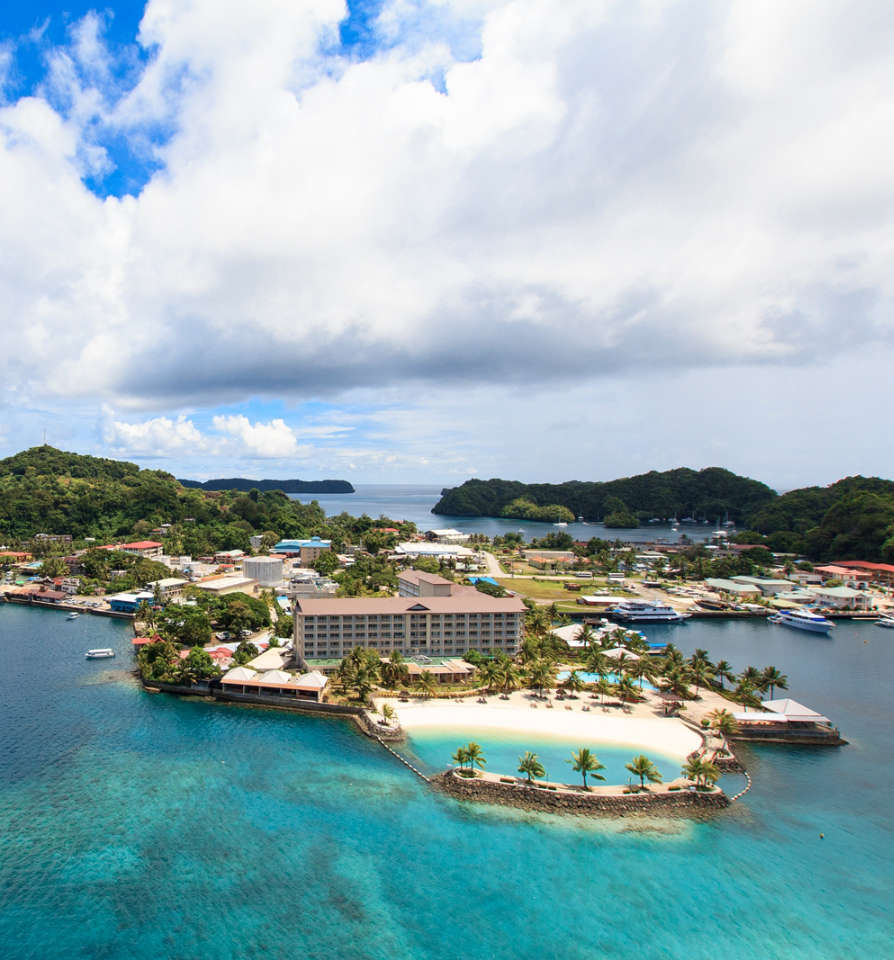 Nestled in the heart of Malakal, Palau Royal Resort is a luxurious 4-star retreat that offers guests a truly unforgettable experience. With its 160 spacious and beautifully appointed rooms, guests will be enveloped in comfort and style throughout their stay. Located just a stone's throw from Fish'n Fins and a short car ride or leisurely 30-minute walk from the bustling center of Koror, Palau Royal Resort is the perfect destination for those seeking adventure and relaxation.