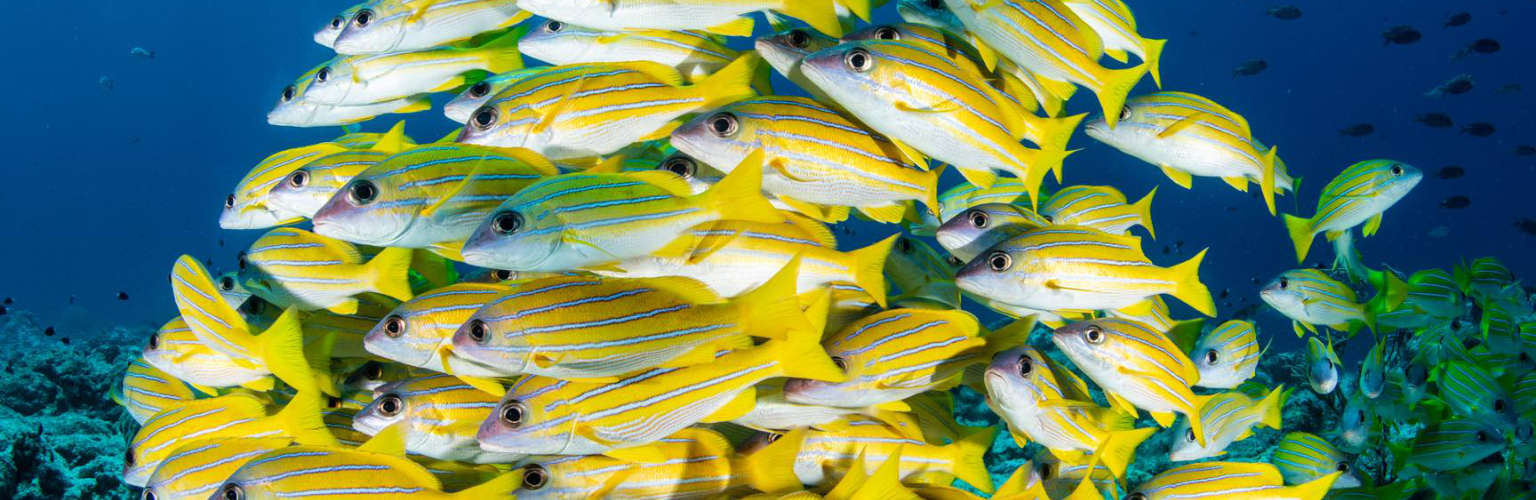 Marine Life: Schools of batfish, snappers, barracuda overhead