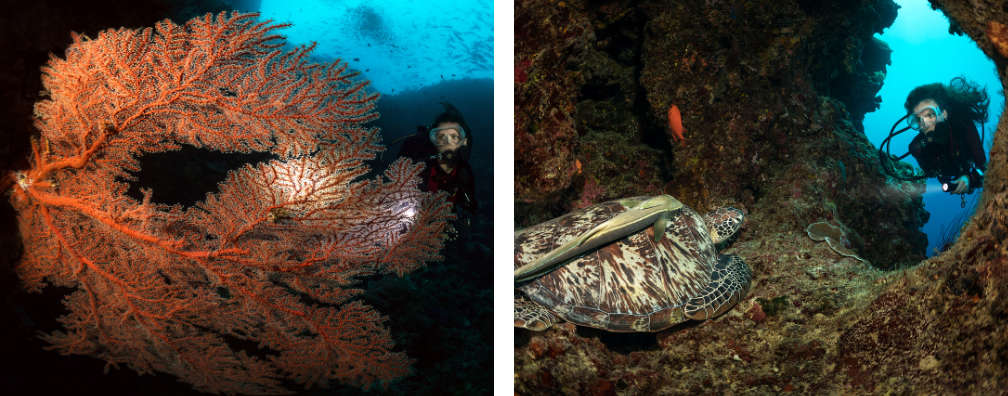 From here you can also explore our house reef - say “hello” to our giant mandarin fish "Gozilla" and watch a number of juvenile fish go about their daily activities. Our house reef dives are free - just let us know in the office, grab a bottle and safety buoy and you're ready to go.